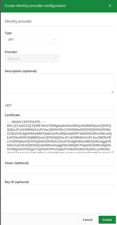 Création d'une configuration de fournisseur d'identité de type JWT