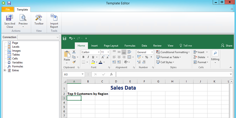 - Cliquez sur le bouton Éditer le modèle pour ouvrir l'éditeur de modèle de Qlik NPrinting Designer.