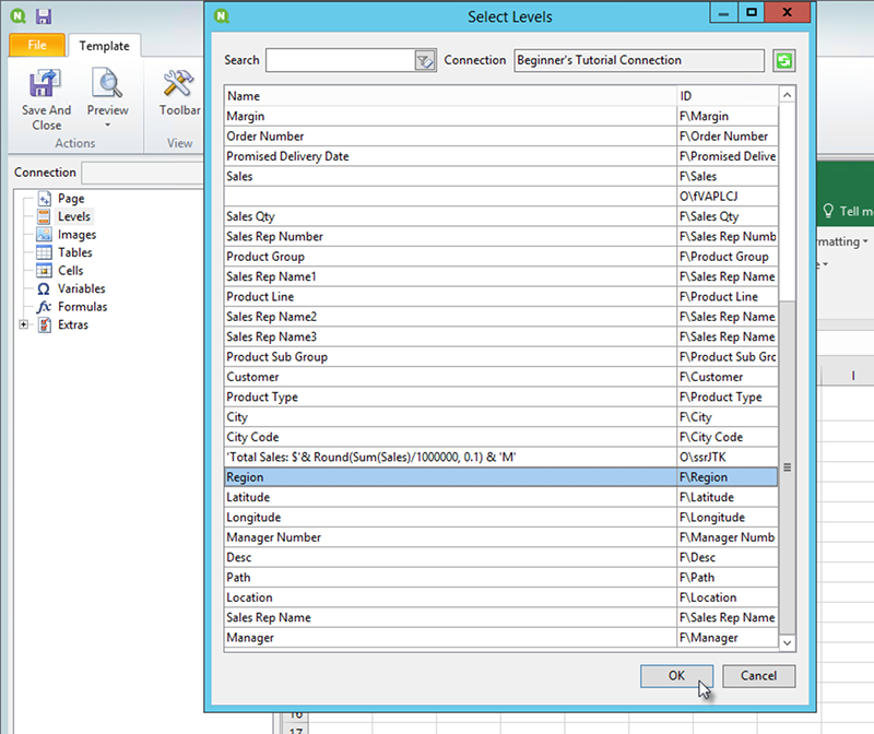 5. Region_Level をセル A2 にドラッグします。