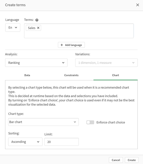 - Если доступно для выбранного типа анализа, задайте сортировку и ограничение для диаграммы.