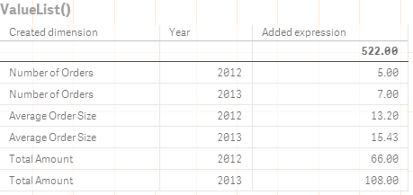 ValueList('Number of Orders', 'Average Order Size', 'Total Amount')