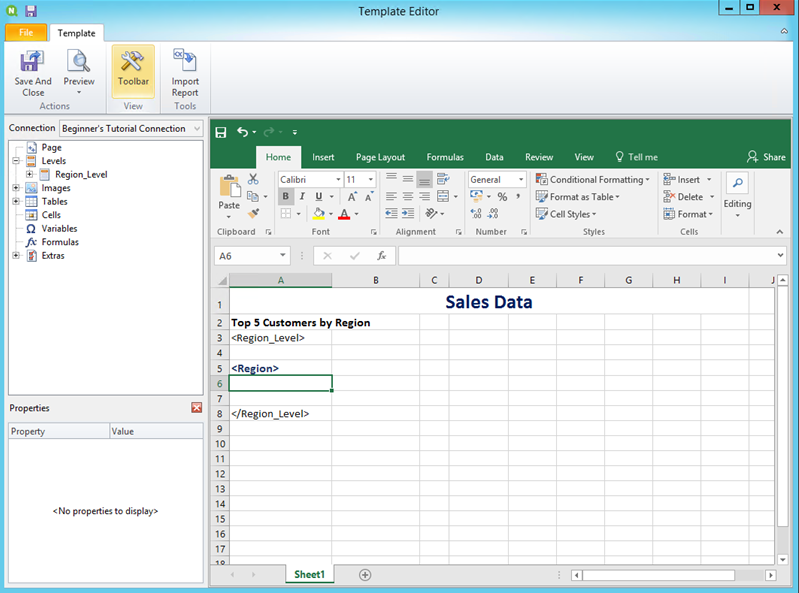 - 将三个行插入 A3 下面以确保自己在 <Region_Level> 和 </Region_Level> 标签之间有四个空单元。