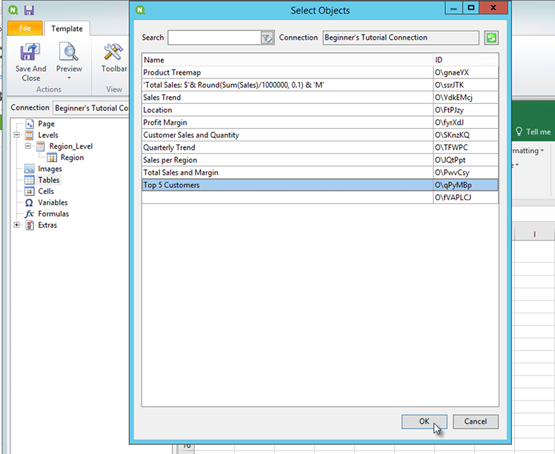 您现在将能够在报表下看到 Beginner's Tutorial NP Excel。